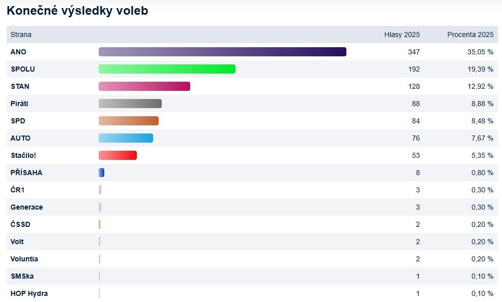 Výsledky voleb do Poslanecké sněmovny ČR 2025