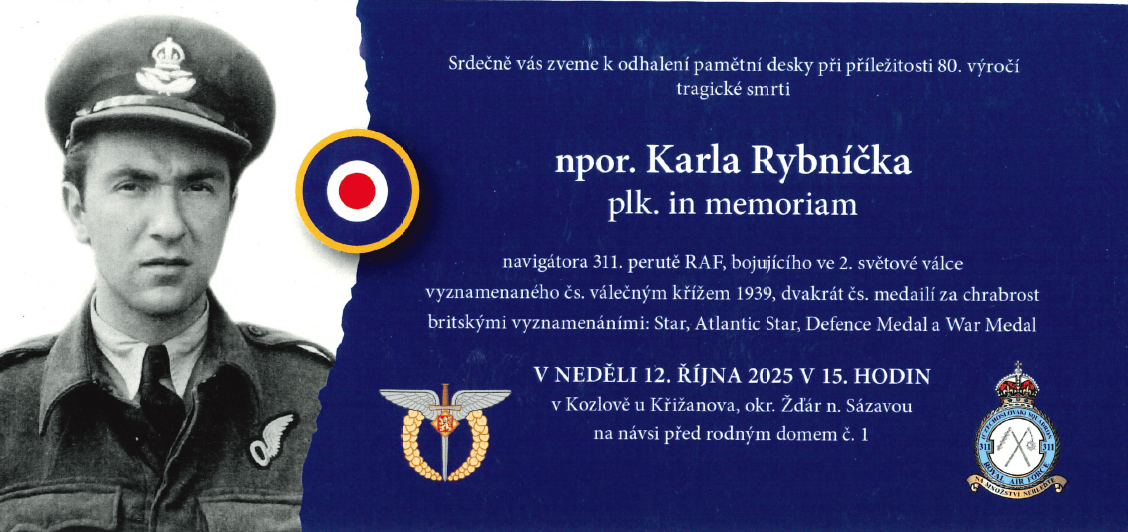 Srdečně vás zveme k odhalení pamětní desky při příležitosti 80. výročí tragické smrti npor. Karla Rybníčka plk. in memoriam.