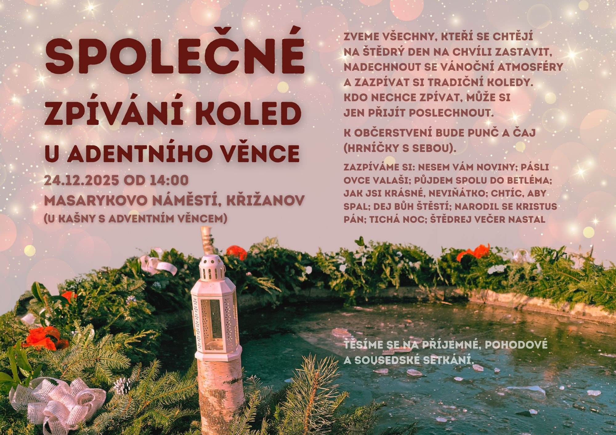 Zveme všechny, kteří se chtějí na Štědrý den na chvíli zastavit. Nadechnout se vánoční atmosféry a zazpívat si tradiční koledy.
