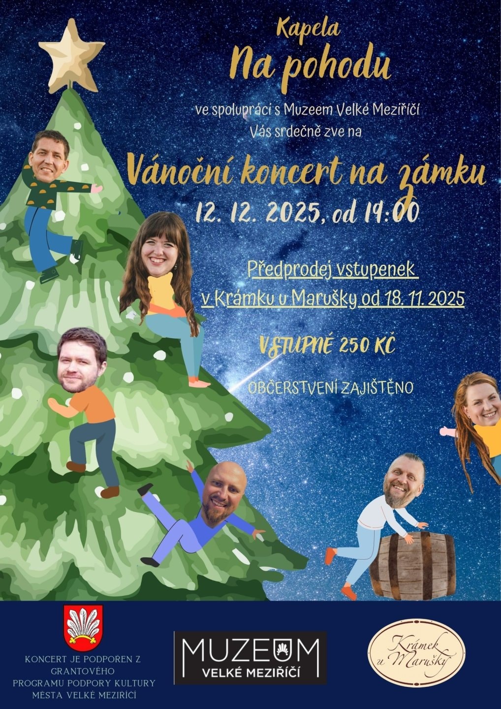 Kapela Na pohodu ve spolupráci s Muzeem Velké Meziříčí vás srdečně zve na Vánoční koncert na zámku.