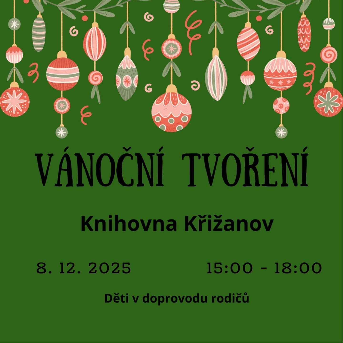 Zveme vás na Vánoční tvoření v knihovně, které proběhne 8. 12. 2025 od 15 do 18 hodin. Čeká vás dílna plná vánoční atmosféry, vůní i nápadů.
